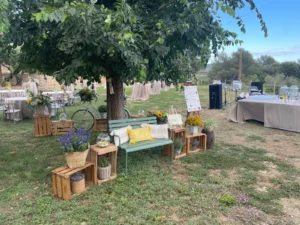 El alquiler del espacio para celebraciones de bodas incluye todos los espacios cercanos a la Masía y la piscina.