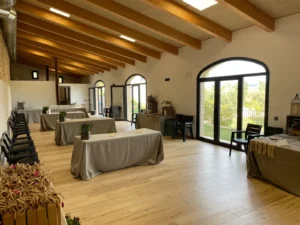 Tenemos parking para 50 coches y aparcamiento de autobuses a 3 minutos a pie de la Masía.